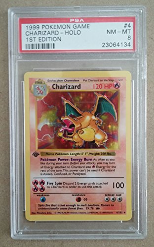 Read main features below to know more about 1999 Pokemon Game 1st Edition Charizard - Holo #4 PSA 8 NM - Mint Shadowless.You can compare with another product for rare pokemon cards